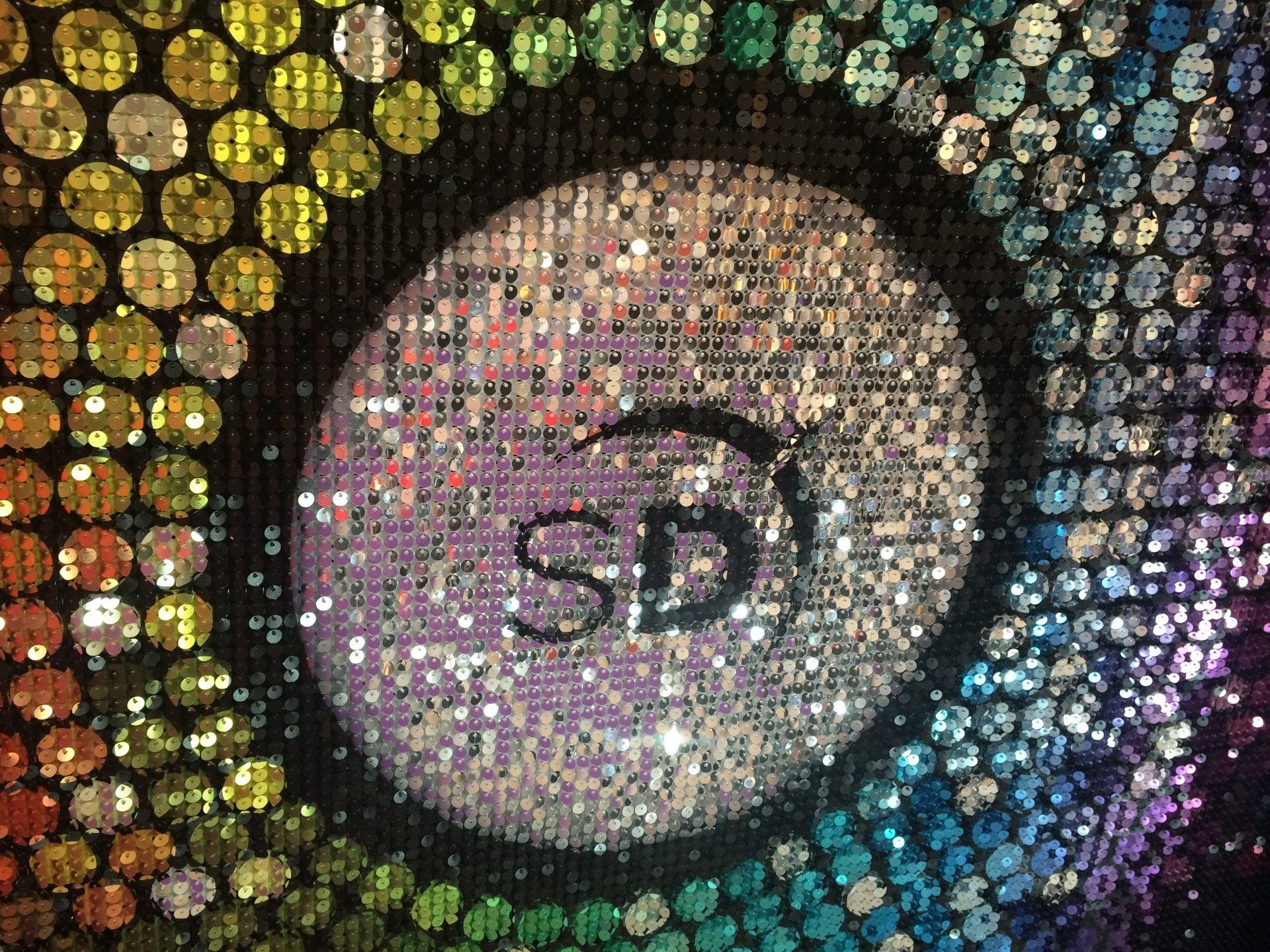 Photographic Glass Finish Sequin Mosaic Displays. Scale to any size. Use indoors our outside.